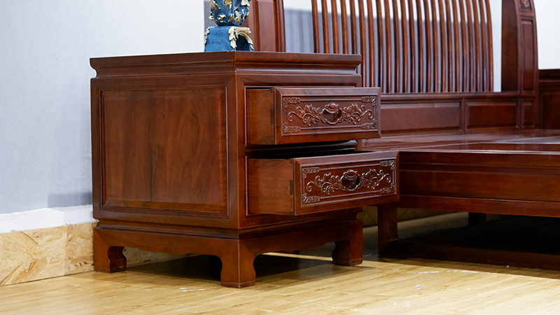 銘仁坊家具均為核桃木制作。核桃木,和道,木中君子,如玉溫潤(rùn),高古拙璞,內(nèi)斂含蓄,紋理若隱如現(xiàn),與微黃的顏色相匹配。